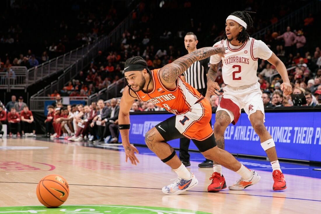 Tomislav Ivisic posted 21 points and 10 rebounds as hot-shooting Illinois scorched No. 19 Arkansas 90-77 on Thursday at Kansas City, Mo. The Fighting Illini canned 15 of 31 3-point attempts (48.4 percent). Illinois (6-1) led wire to wire for its third straight win to go to 6-1 all-time against the Razorbacks (5-2). Matched up against 7-foot-2 twin brother Zvonimir Ivisic, Illinois’ 7-foot-1 Tomislav Ivisic sank 6 of 9 from deep and added three blocks before fouling out in the final minute. The Fighting Illini’s Kasparas Jakucionis had a team-high 23 points to go with six rebounds and four assists. Kylan Boswell added 18 points and six assists. Arkansas’ Adou Thiero notched a game-high 26 points and had six rebounds but missed nine of his 21 free throws. Zvonimir Ivisic had 13 points and six rebounds, while Billy Richmond III added 12 points. Illinois set the tone with an 11-0 run to start the game, getting a 3-pointer from Ben Humrichous and two treys from Tomislav Ivisic sandwiching a hoop from Boswell before Zvonimir Ivisic finally scored for Arkansas. The Fighting Illini’s lead grew to 14-2 on Boswell’s 3-pointer at 14:56, and Illinois hit its fifth trey in eight tries with Humrichous draining his second at 12:39 for a 21-6 edge. Richmond scored six points as the Razorbacks cut the deficit to single digits, 25-16, on his layup at 8:17. The Illini continued to make deep shots, including ones by Jake Davis and Tomislav Ivisic, as the Razorbacks kept driving the lane with Boogie Fland, Thiero and D.J. Wagner, trading 3-pointers for layups and foul shots. The Fighting Illini led 49-34 at halftime by taking advantage of their sharpshooting, sinking 9 of 16 from beyond the arc. Arkansas missed all seven of its long-range attempts before the break. Near the midpoint of the second half, the Razorbacks got within 66-57 on Trevon Brazile’s trey, but Humrichous answered with a trey 25 seconds later as Arkansas never cut any deeper into the deficit. –Field Level Media