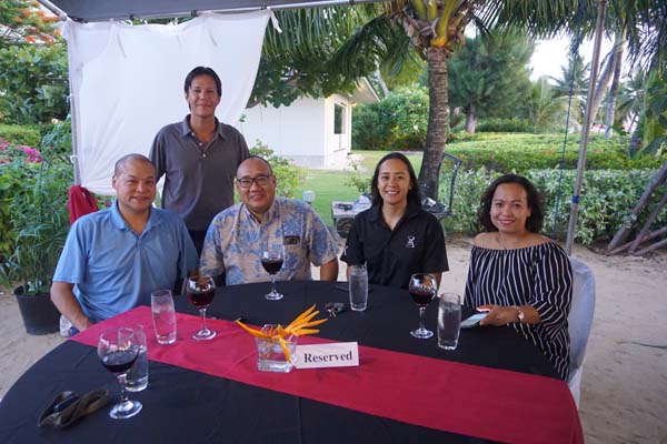 From left, Mike Taylor, Danny Atwood, Kirk Johns, and Eduardo O. Flores enjoy their first Island Sundowner at the Hyatt Regency Saipan last Friday. (PHOTOS BY BEA CABRERA)