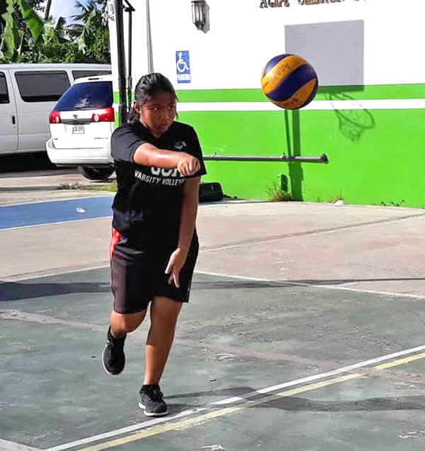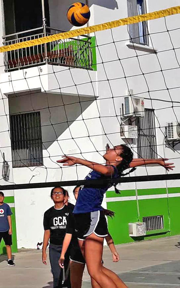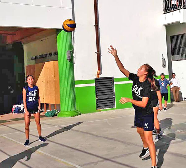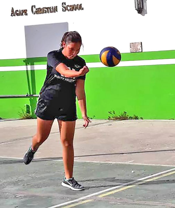 Grace Christian Academy’s Karina Dilse, right, hits the ball after being set up by her teammate during their girls high school division game against Agape Christian School in the 2018-2019 Commonwealth Coalition of Private Schools Association Volleyball League last Tuesday at the Agape court in Gualo Rai.