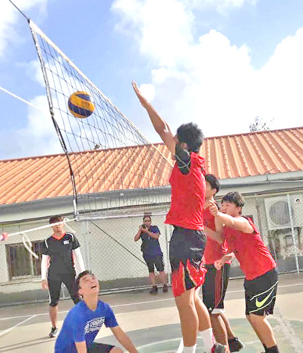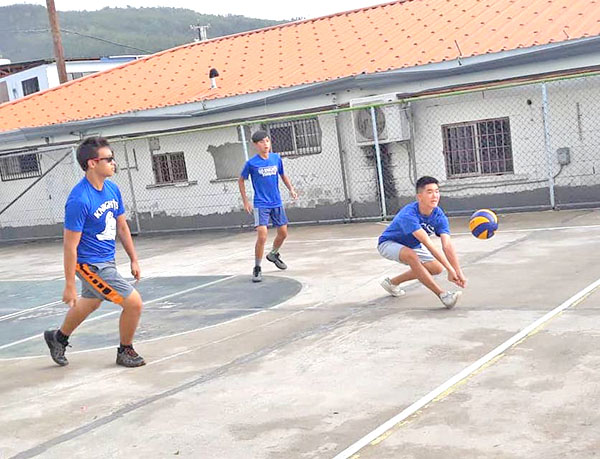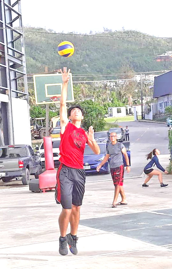 A Mt. Carmel School player bends down to hit the ball during their game against Agape Christian School in the boys division of the 2018-2019 Commonwealth Coalition of Private School Association High School Volleyball League last Thursday at the Agape court in Middle Road.