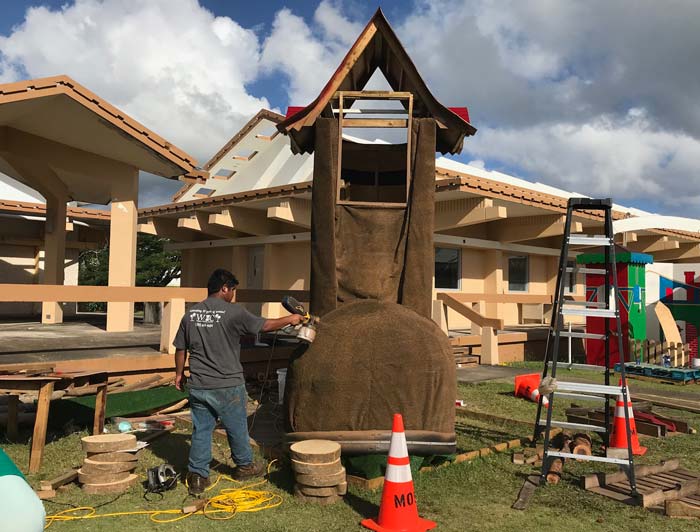 Workers race to finish building The Old Woman Who Lived in a Shoe by the Saipan Mayor’s Office. (Kimberly A. Bautista)