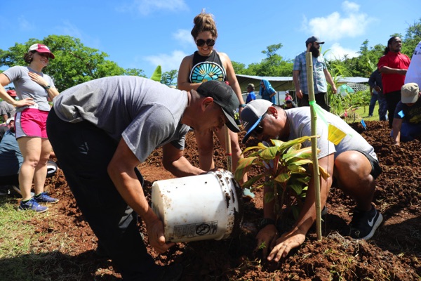 Last week, community members on Saipan participated in the Agroforestry Workshop hosted by the Northern Marianas College-Cooperative Research, Extension, and Education Services program. Participants were able to learn about the latest strategies (including hands-on activities) in planning and creating a food forest. Photo shows Aunty Shirley Kauhaihao, Dr. Craig Elevitch, and Mr. Neil Logan from Hawaii pose for a photo at the Agroforestry Workshop. (Photos by NMC-CREES)