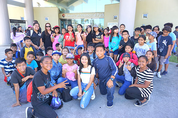 Students from Garapan Elementary school walk to the American Memorial Park to witness the launch last Tuesday of the American Memorial Park quarter at the AMP amphitheater in Garapan.