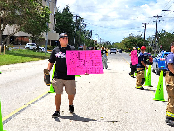 Gov. Ralph DLG Torres, fifth left, joins government personnel and other volunteers in last Saturday’s relief drive at the Garapan Fishing Base. (Jon Perez)
