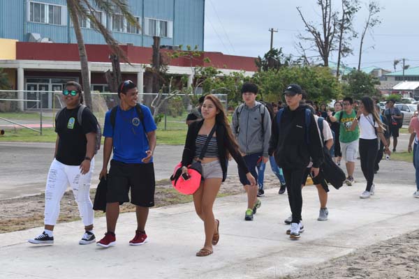 Fotogalleria Back to School 7 years ago Erwin Encinares | Reporter Students throw around a football at the Marianas High School parking lot before classes start. (Erwin Encinares) 1 Students throw around a football at the Marianas High School parking lot before classes start. (Erwin Encinares) 2 Students make their way to their new room assignments at Marianas High School. (Erwin Encinares) 3 Students make their way to their new room assignments at Marianas High School. (Erwin Encinares) 4 Students make their way to their new room assignments at Marianas High School. (Erwin Encinares) 5 Students make their way to their new room assignments at Marianas High School. (Erwin Encinares) 6 Education Commissioner Glenn Muña, far right, speaks with some of the students and parents at Marianas High School. (Erwin Encinares) 9 Students make their way to classrooms for the second period. (Erwin Encinares) 10 Students make their way to classrooms for the second period. (Erwin Encinares) Continue Reading Previous Atalig girlfriend pleads not guiltyNext Skymark asks CPA for office space