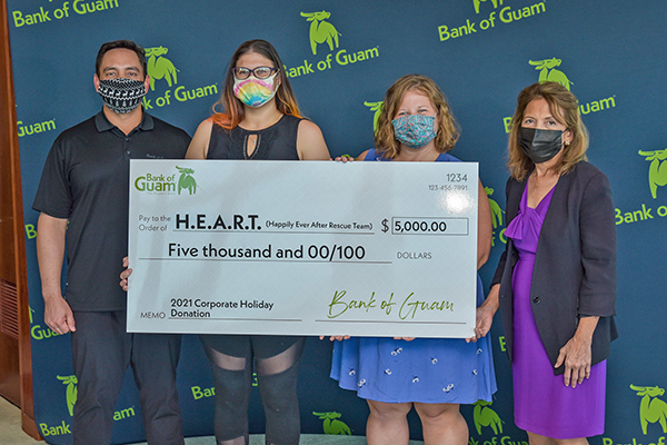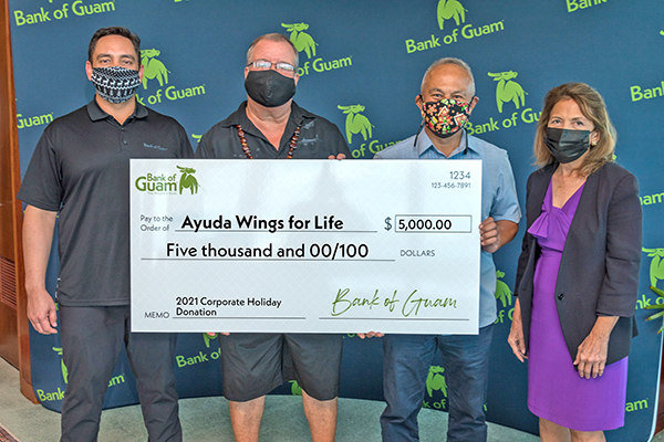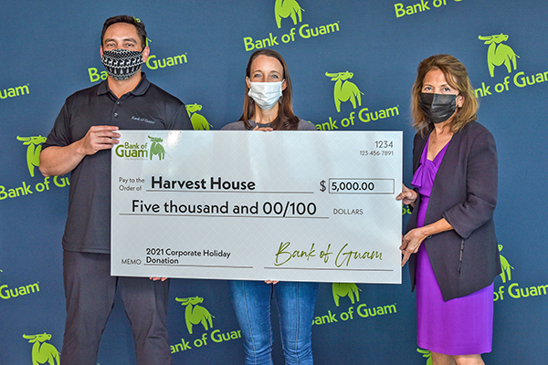 The 2021 Bank of Guam holiday donation beneficiaries, each receiving $5,000, are: Harvest House; H.E.A.R.T. Guam; Ayuda Wings for Life; Ohala Foundation; and Women United Together Marshall Islands.