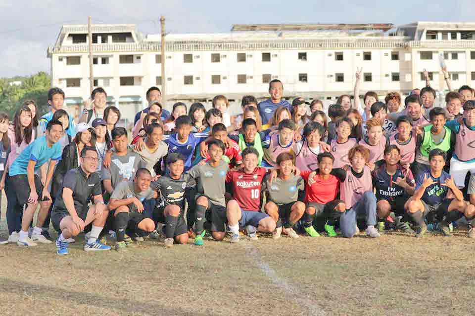 Players and coaches of the CNMI Boys U15 National Team training pool and the Japan-based University Network for Global Leadership pose for a photo after their friendly game last week at the Hopwood Middle School Field.