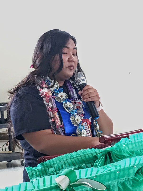 Shannea Mae Dino finished at the top of her class and also received the BOE award, while Bernalie Tina Dafrow was the salutatorian and was honored with the Commissioner of Education plaque.