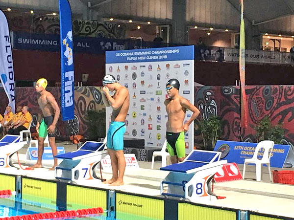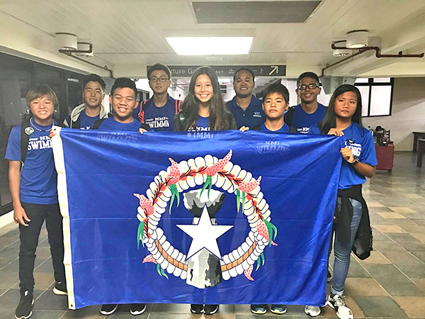 The CNMI Swim Team poses for a photo at the Francisco C. Ada/Saipan International Airport before heading to Papua New Guinea to compete in the 12th Oceania Swimming Championships.