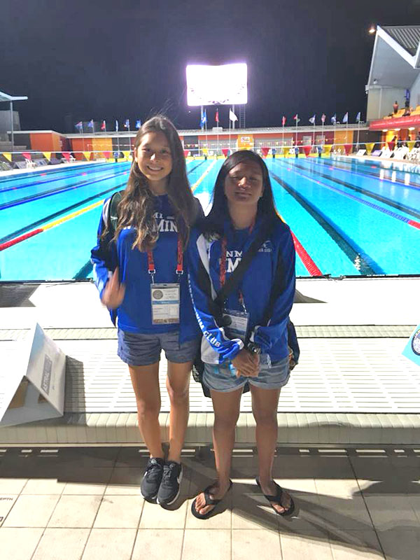 Jinju Thompson, left, and Sophia Gauran pose for a photo at the conclusion of the competition at the Taurama Aquatic and Indoor Centre in Port Moresby.