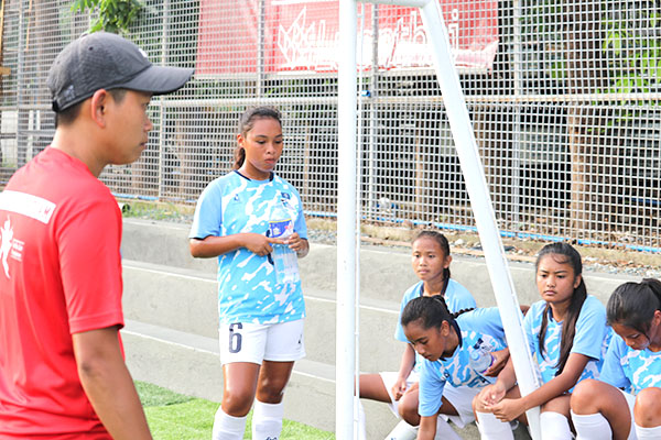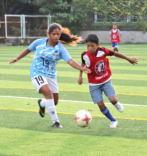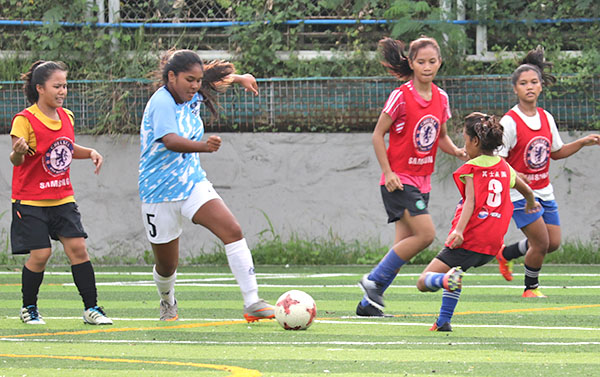 The CNMI Girls U16 National Team’s Emalyn Aniana kicks the ball during their training game against Tuloy Foundation, Inc. in the Philippines last month.