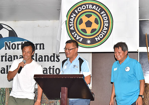 Tan, Del Rosario, other NMIFA officials, club officers, visiting coach Ryuji Sueoka of St. Catherine University, and the players’ parents were among the well-wishers of the U15 squad during a send-off ceremony held yesterday at Kanoa Resort.