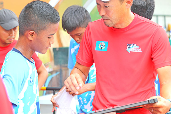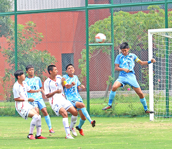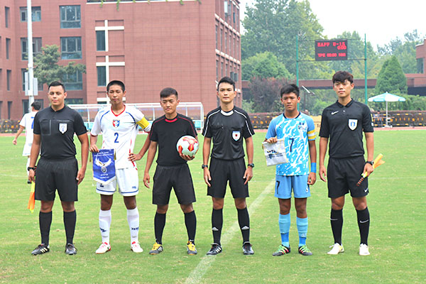 CNMI and Chinese-Taipei players line up as they head to the pitch for their game in the East Asian Football Federation U15 Boys Tournament 2018 in China last week.