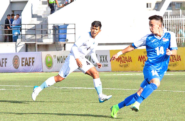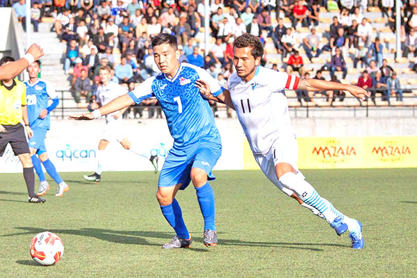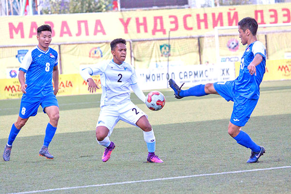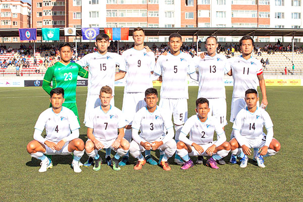 Members of the CNMI Men’s National Team’s starting unit pose for a photo before playing against Mongolia in the EAFF E-1 Football Championships 2019 Round 1 last week at the Mongolian Football Federation Stadium in Ulan Bator, Mongolia.