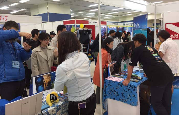 Divers, resort-lovers, travel trade representatives, and others visit the CNMI’s booth at Marine Diving Fair on April 7-9, 2017, in Tokyo, Japan.