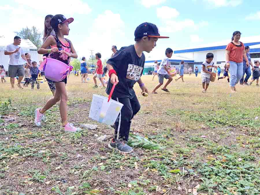 Children scour the courtyard of the Joeten-Kiyu Public Library in last Sunday’s Easter Egg Hunting and Spring Carnival jointly staged in partnership with Imperial Pacific International. (Contributed Photo)