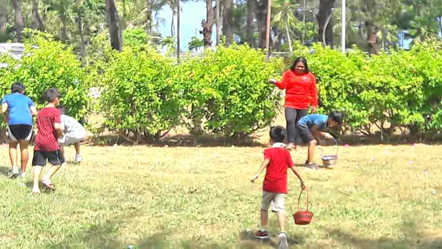 The courtyard of the Joeten-Kiyu Public Library was once again turned into a venue for the community this past Easter Sunday, with about 200 children and their families gathered with empty basket and returned home with a bounty of eggs.