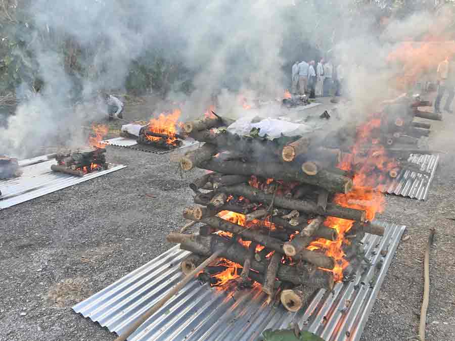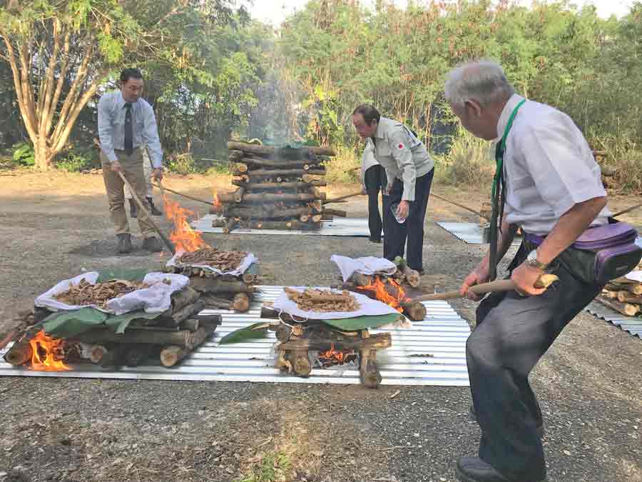 The remains of 39 Japanese soldiers are cremated during the Japanese Association for Recovery and Repatriation of War Casualties’ first cremation ceremony last Feb. 6 at the Banadera Trail in Marpi.