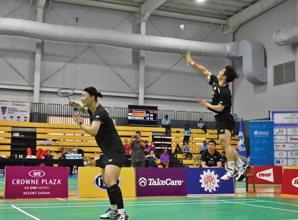 South Korea’s Chan Wang and Seung Chan Shin, mixed doubles finals winners of the Crowne Plaza Northern Marianas Open 2023, are seen in their finals match against Japan’s mixed pairs. (PHOTOS AND TEXT BY LEIGH GASES)