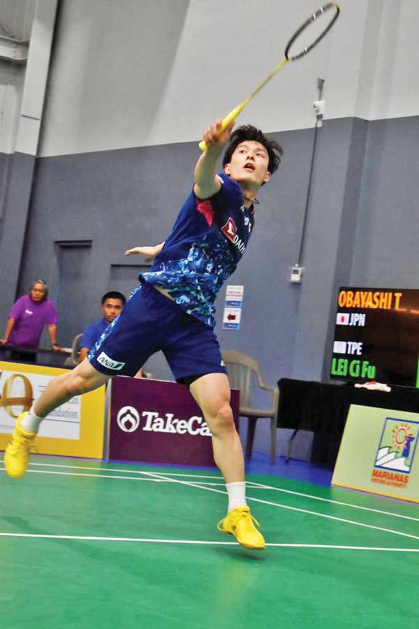 Sixth seed Takuma Obayashi of Japan, the men’s singles champion, is seen here in his men’s singles finals match in the TakeCare Saipan International 2023.
