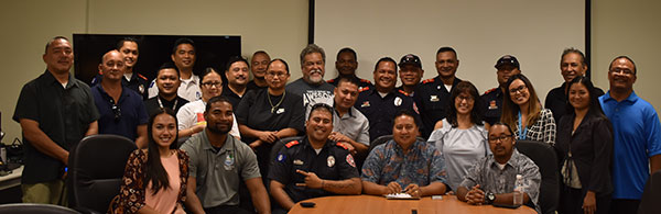 Acting Saipan mayor Luis John Castro and Department of Fires and Emergency Services personnel Robert Mojica alternately read the proclamation.