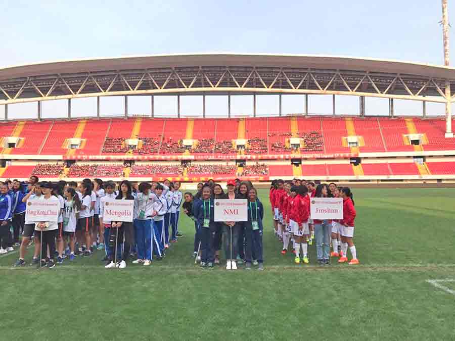 The CNMI Girls U15 National Team’s starting 11 pose for a photo before playing against Jinshan during the EAFF U15 Girls Tournament 2017 held last week at the Jinshan Sports Center in Shanghai, China.