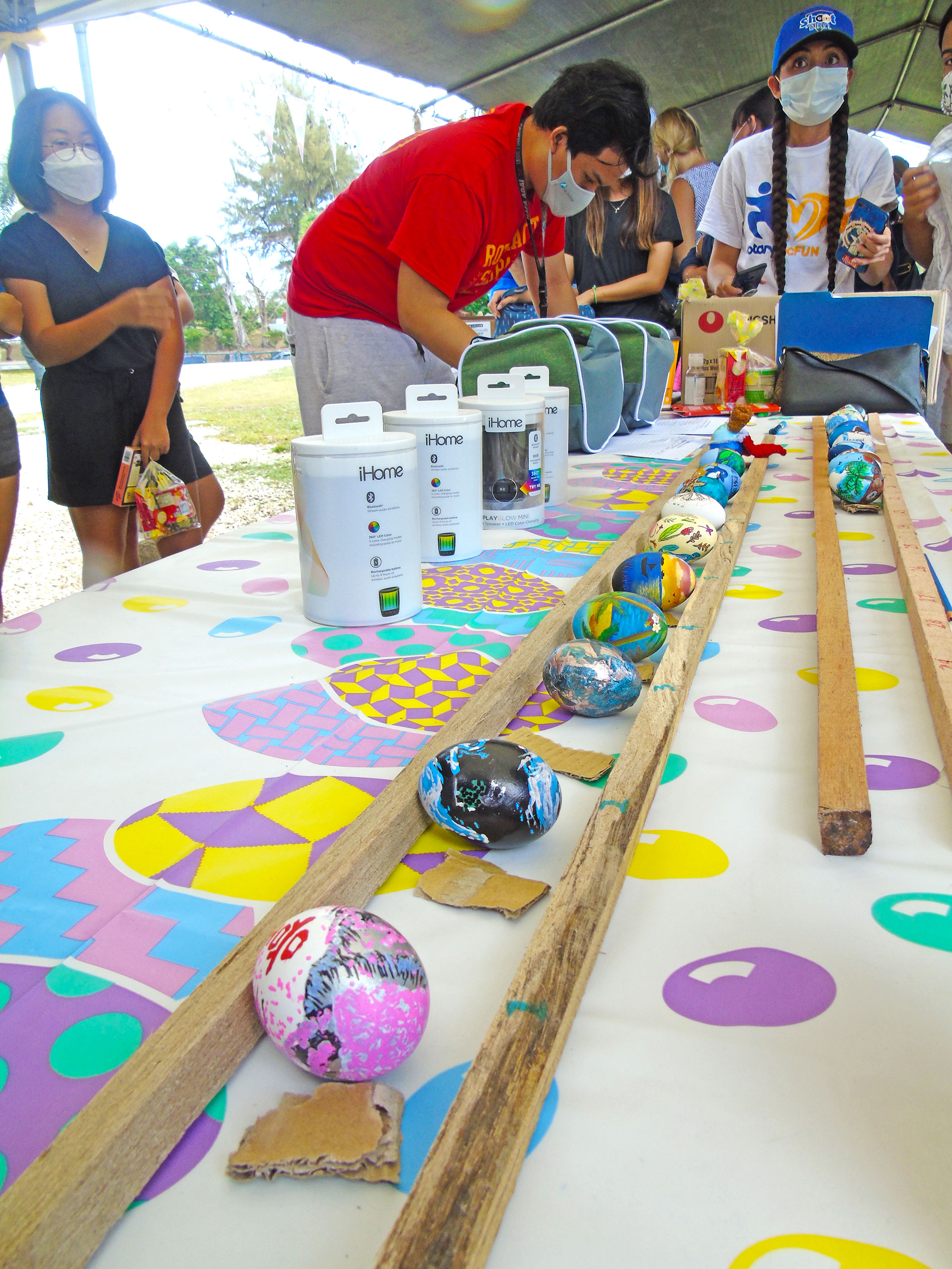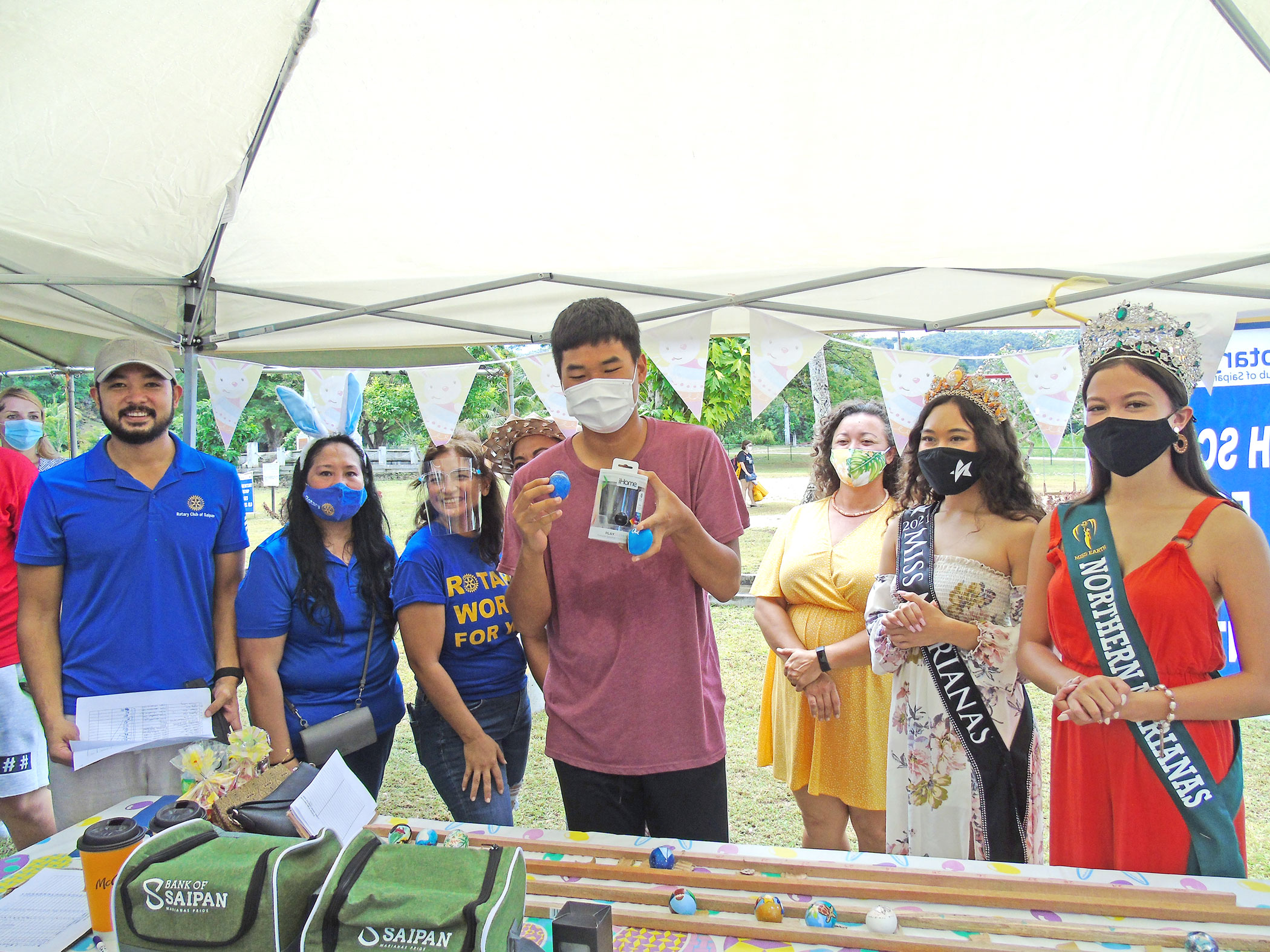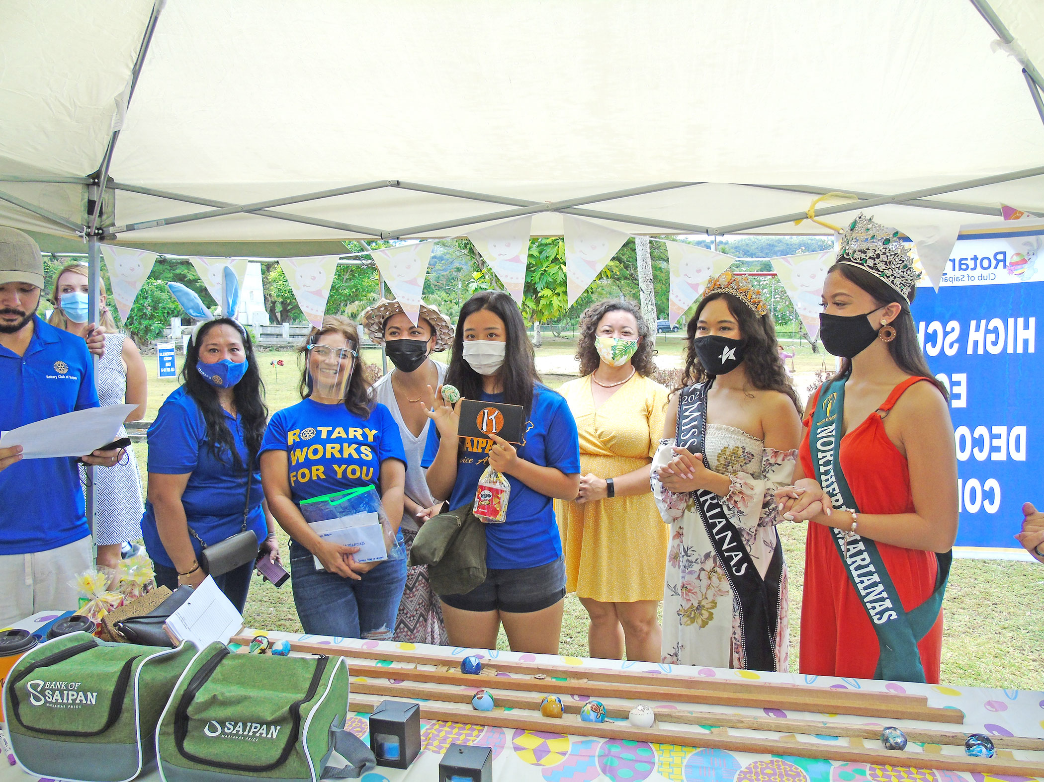Around 300 people gathered for the Easter Egg Event of the Rotary Club of Saipan last Saturday, April 3. Over 2,000 eggs were hidden all over Sugar King Park in Garapan for participants to hunt and win prizes. On the other side, high school kids competed in an egg decoration contest, with Pauline Viray winning in first place, Joanna Caguioa in second place, Irish Viray in third place, Na Dee Lee in fourth place, Hyun Min Cho in fifth place, Fania Staffler in sixth place, and Jun You in seventh place. (Photos by Neil Fama/Rotary Club of Saipan)
