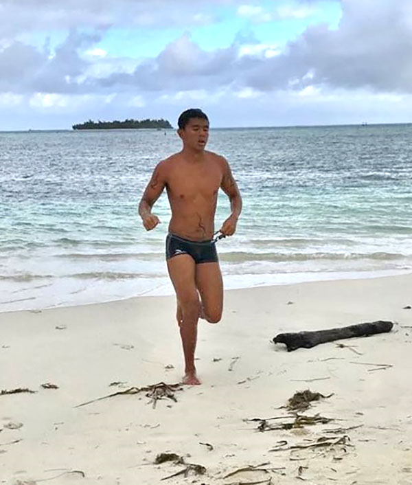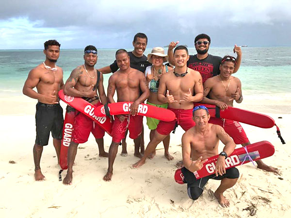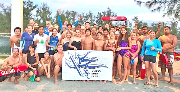 Participants in the Escape from Managaha pose for a photo before heading to the famous island. Saipan Swim Club organized the 2.4-kilometer crossing from Managaha to Micro Beach.