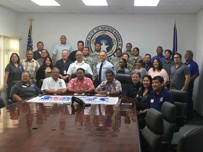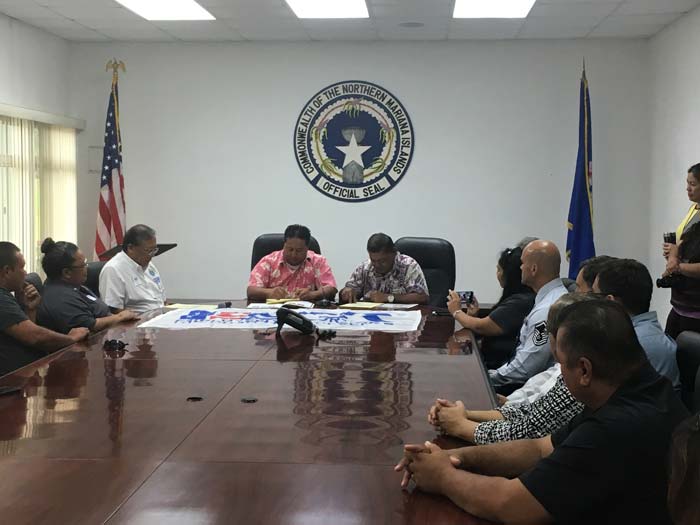 Gov. Ralph DLG Torres, center left, and Lt. Gov. Victor B. Hocog at the Office of the Governor conference room sign the proclamation designating Aug. 13-19 as Employer Support of the Guard and Reserve Week (Kimberly A. Bautista)