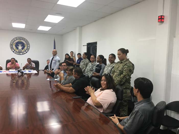 Reserve soldiers at the Office of the Governor conference room are recognized during the proclamation designating Aug. 13-19 as Employer Support of the Guard and Reserve Week. (Kimberly A. Bautista)