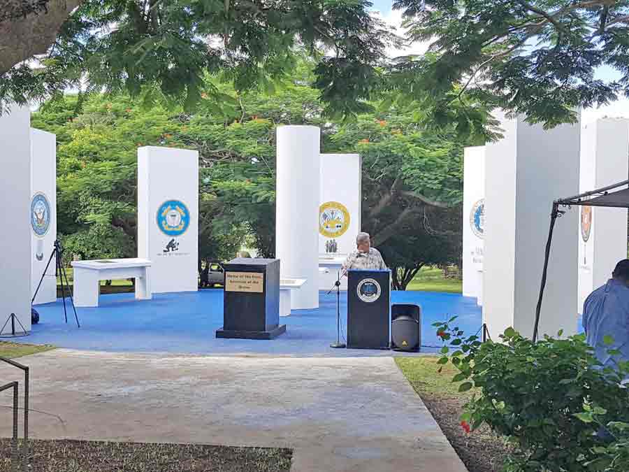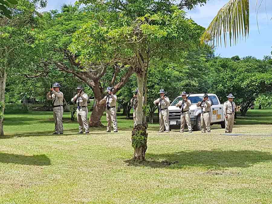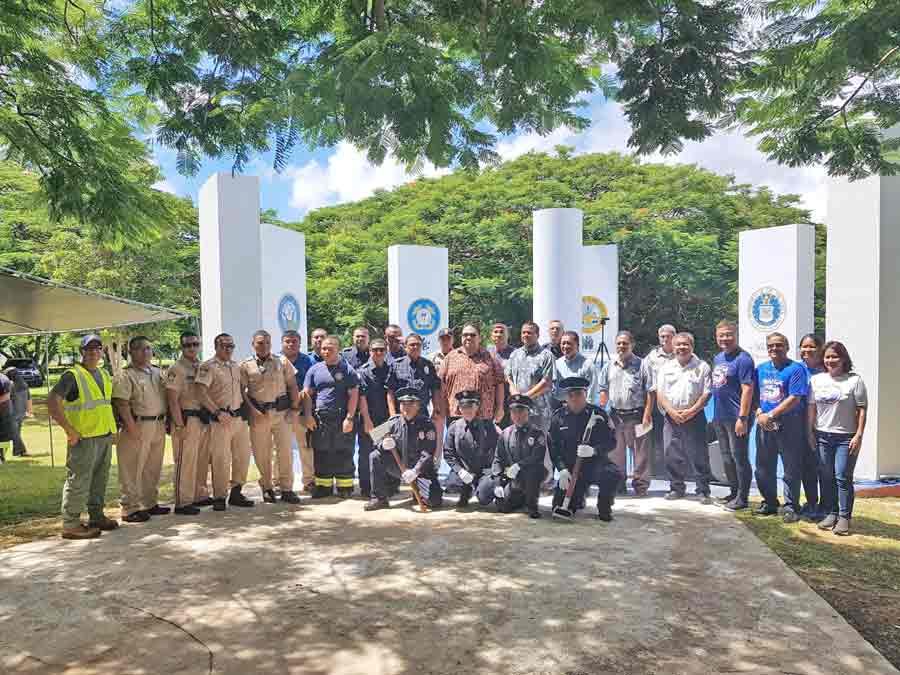 A Department of Public Safety team on Tinian performs a 21-gun salute during the Field of Heroes ceremony last Monday at the Tinian Veterans Memorial Park.