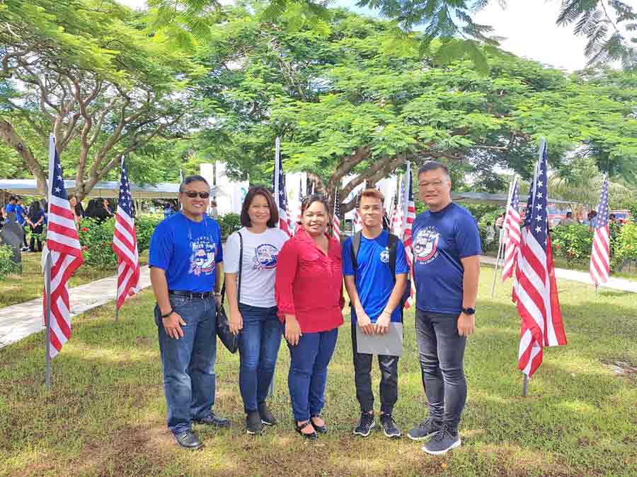 Tanholdings Corp. president Jerry Tan, far right, poses with the Tinian High School student 9/11 essay-writing contest winner last Monday during the Field of Heroes ceremony at the Tinian Veterans Memorial Park.