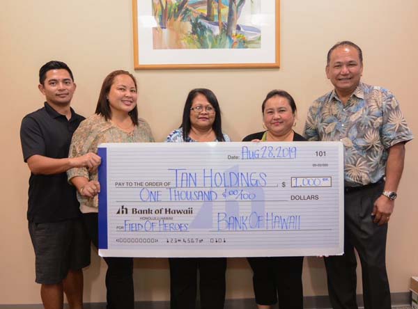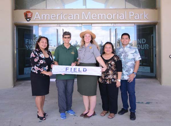 From left, TanHoldings Corporate Affairs Community Relations director Carline Sablan, American Memorial Park superintendent Barbara Alberti, park ranger Brooke Nevitt, and Tan Siu Lin Foundation’s Mel Naputi and Raymond Zapanta pose for a photo after the National Park Service was named field sponsor of We Will Never Forget: Field of Heroes, a 9/11 commemoration.