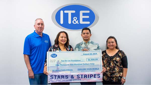 IT&E Customer Operations executive director Rob Harrell, left, presents the ceremonial check donation to organizers of the We Will Never Forget: Field of Heroes.