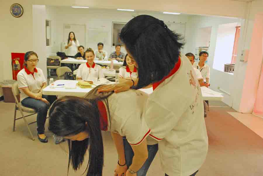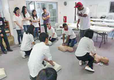 Imperial Pacific International staff take turns to practice the skills learned during the CPR segment of the course. (Contributed Photo)