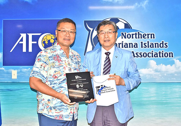 “It’s my great pleasure to come here to Saipan and share this small amount from our foundation to NMIFA to help in the repair of your facility,” Lee said. “We, at the KFA Football-Love Sharing Foundation believe that we are one football family in Asia and we always want to look for ways to help our family members.”