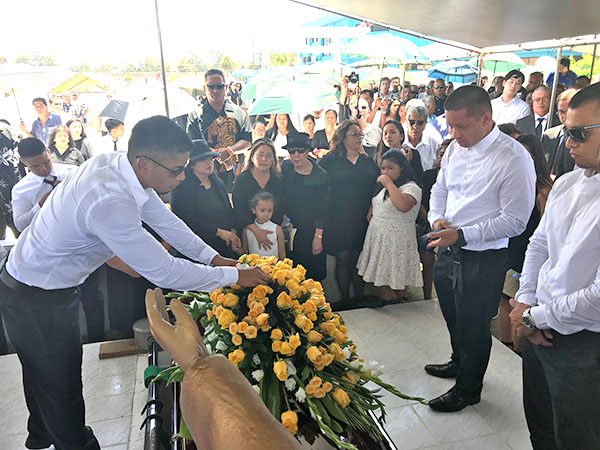 Former governor Pedro Pangelinan Tenorio’s casket is sealed during the interment ceremony yesterday at the Diocese of Chalan Kanoa.