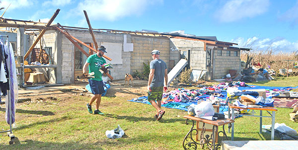 Friends and co-workers of PSS Athletic Program director Nick Gross help clean his house that suffered massive damage due to Super Typhoon Yutu. (Roselyn B. Monroyo)