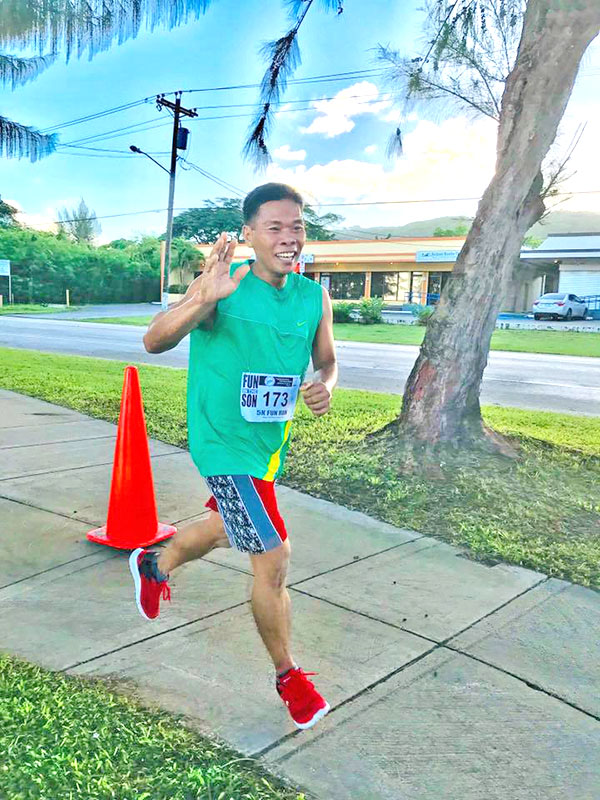 Ayano Braxton smiles for the camera as she makes a turn just past the Quartermaster Road on her way back to the Minatchom Atdao Pavilion during the Fun in the Son 5K Run held last Saturday.