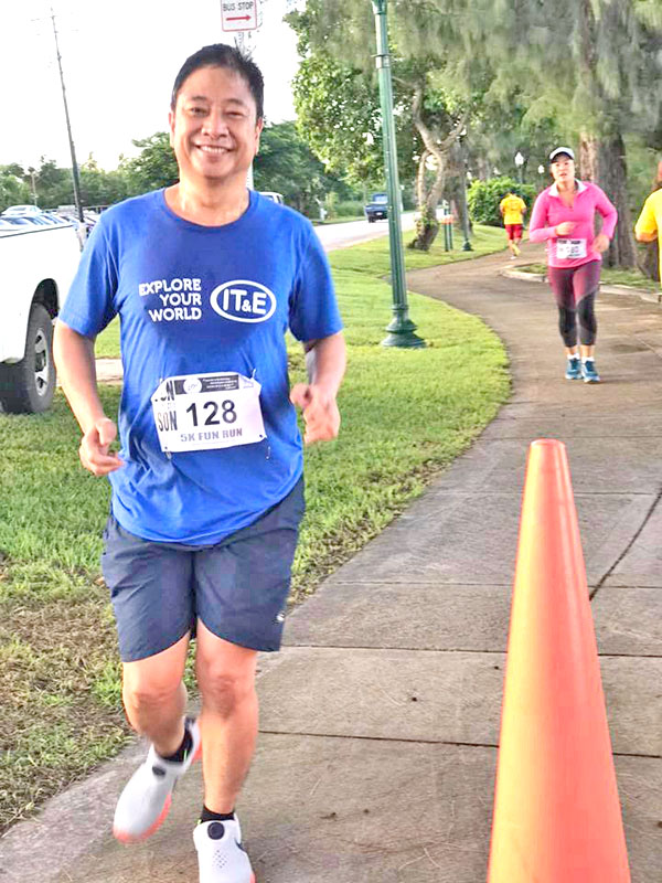 IT&E’s Vic Regis is all smiles, as he is halfway done in the 5K race.
