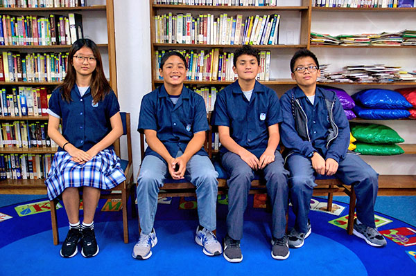 The winners posed for a souvenir photo inside the Rev. Raymond S. Kinsella Library at Navy Hill school campus, Saipan. Below is the complete list of winners.