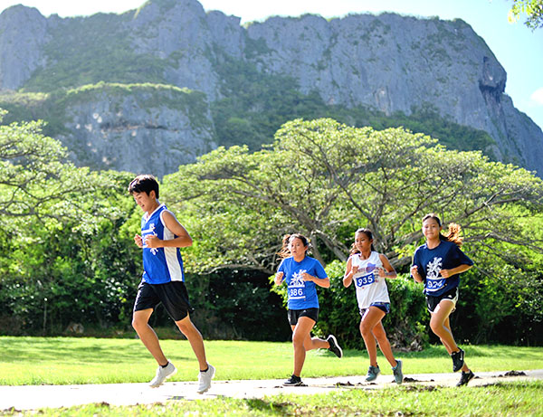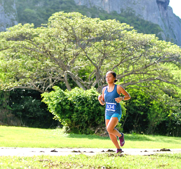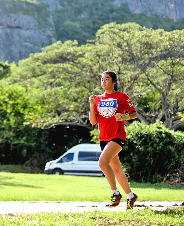 Runners run along Marpi with the Banzai Cliff as their backdrop during last Wednesday’s Geckos 5000—a cross country race organized by Saipan International School.