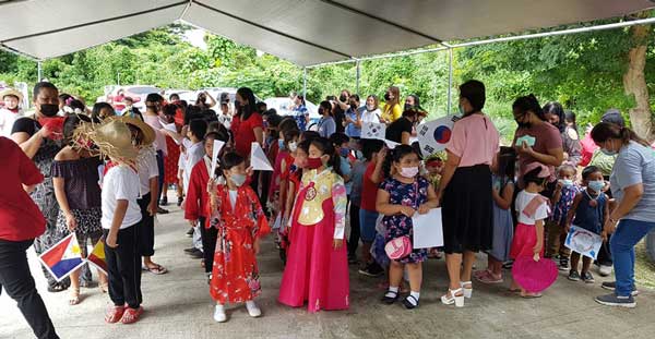 The day started with a parade of nations, with each class, themed around a specific nation’s culture, marched in their costumes and flags around the campus grounds. After a short break, students showcased their costumes and different cultural attire, with each class taking the stage in turns to display their cultural and well-made homemade costumes. Some students wore traditional Japanese kimonos, some wore islander hat and skirts woven from leaves, some wore Indian saris and headdress shawls, while others wore Filipino barongs.