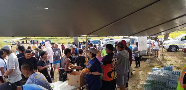Free healthy snacks and water are handed out to pilgrims who were making the ritual Good Friday trek up Mt. Tapochau. (Jon Perez)