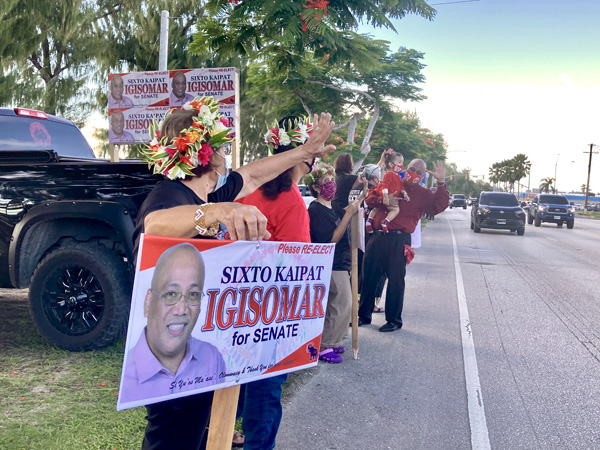 The NMI Republican Party kicks off the campaign season Friday with a roadside waving along the Beach Road intersection in San Jose, in an event attended by hundreds of supporters, with the candidates running to be elected present, as well as Gov. Ralph DLG Torres and Lt. Gov. Arnold I. Palacios, who came to show their support. (IVA MAURIN)