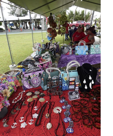 Arts, crafts, and other products were demonstrated or sold by Bwiibs Merchandise, Will & Ebs Tropic Threads, Islandry670 Handmade, Bonitu Basula, Flower Pot Creations, and John Gerald Pangelinan. Food sales by Chagi Norf Kitchen and Island Snow included indigenous dishes.