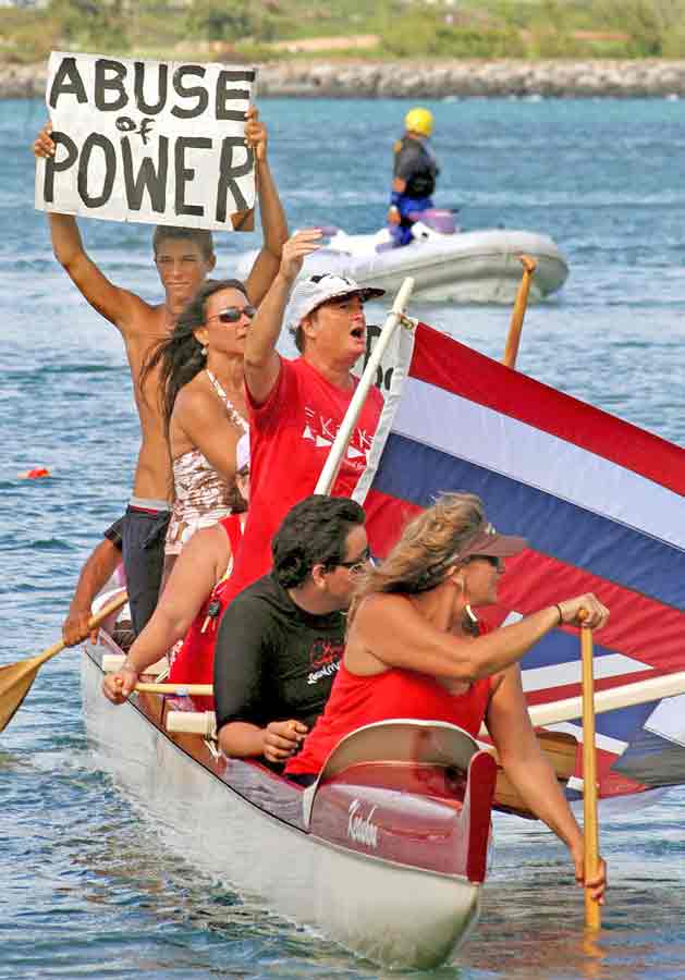 HONOLULU (AP)—When a 30-foot-tall ferry loomed outside a Kauai harbor in 2007, surfers and kayakers—looking like tiny ducks in comparison—blocked its path, preventing it from unloading hundreds of passengers and sending the giant catamaran back to Oahu.