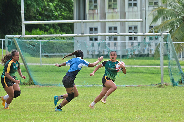 The High Performance women’s rugby club captured the very first Lady Triton Women’s Rugby Sevens Tournament championship with a 36-0 victory over the Para Todu club on Saturday at the University of Guam Rugby Field. The university’s Triton Athletics Department hosted the two-weekend tournament in conjunction with the debut of its first-ever women’s rugby team.