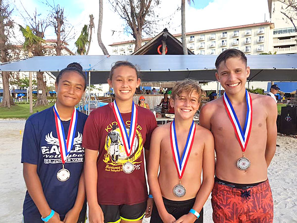 Players of the MCS Knights pose for a group photo after beating The Bump in the finals of the co-ed U14 division of the Hope For Tomorrow Yutu Relief Fundraiser Beach Volleyball Tournament held last Saturday at the Fiesta Resort & Spa Saipan sand courts.