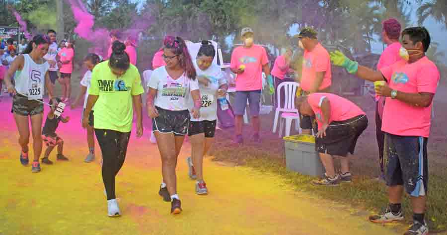 Colored powder greets participants.